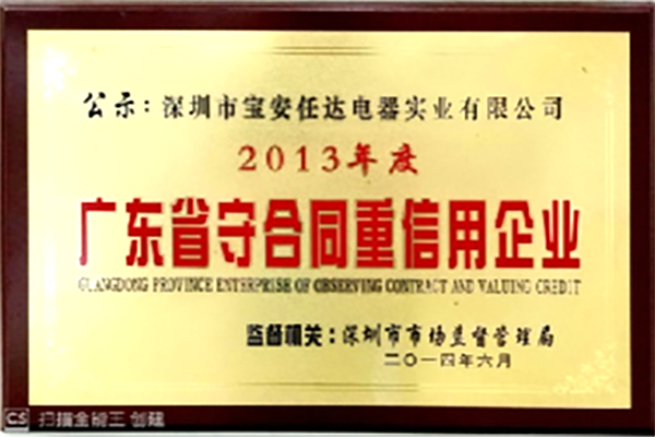• 2012年度廣東省守合同重信用企業